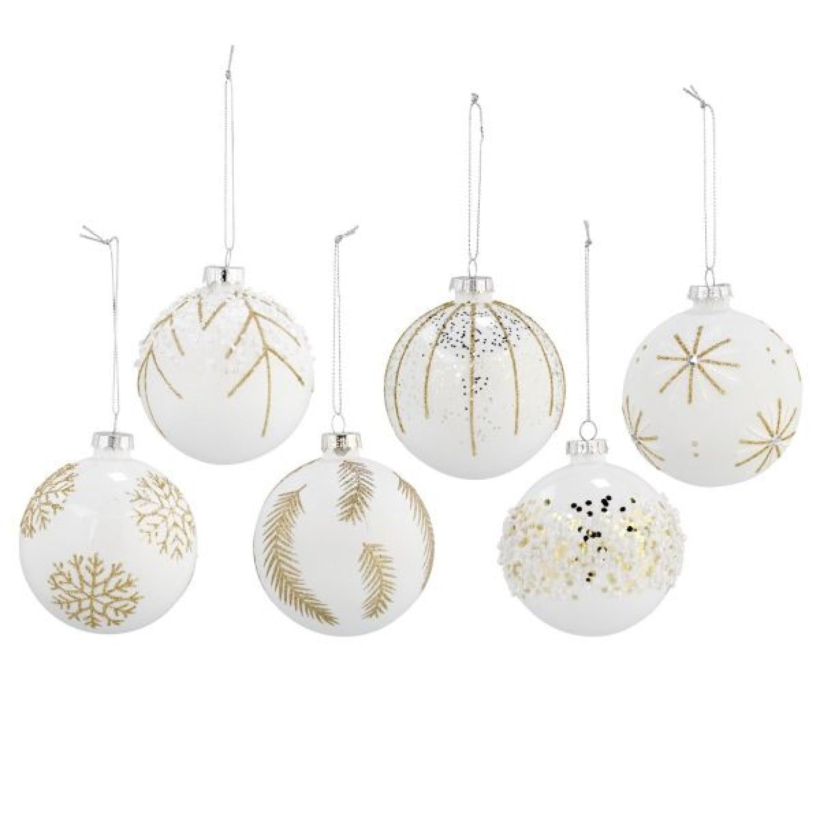 Set Of 6 Assorted White With Different Gold Patterns Ornament