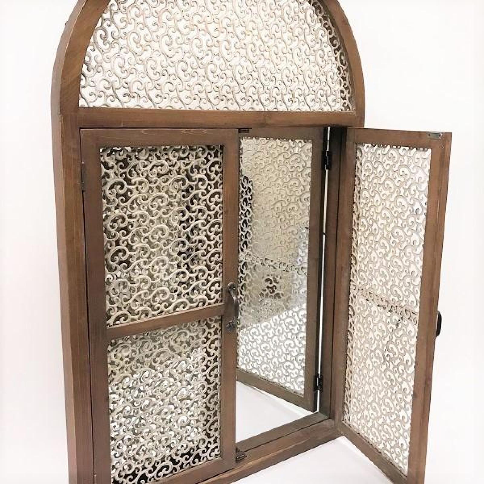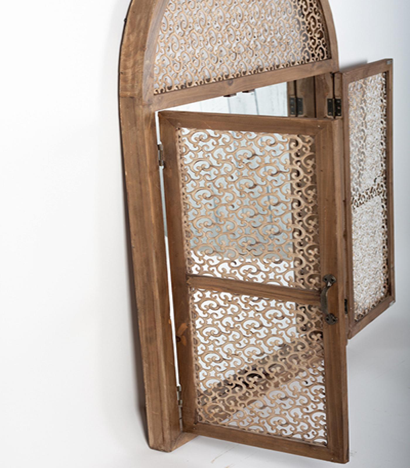 Wooden Frame With Ornate Metal Inset Doors Wall Mirror