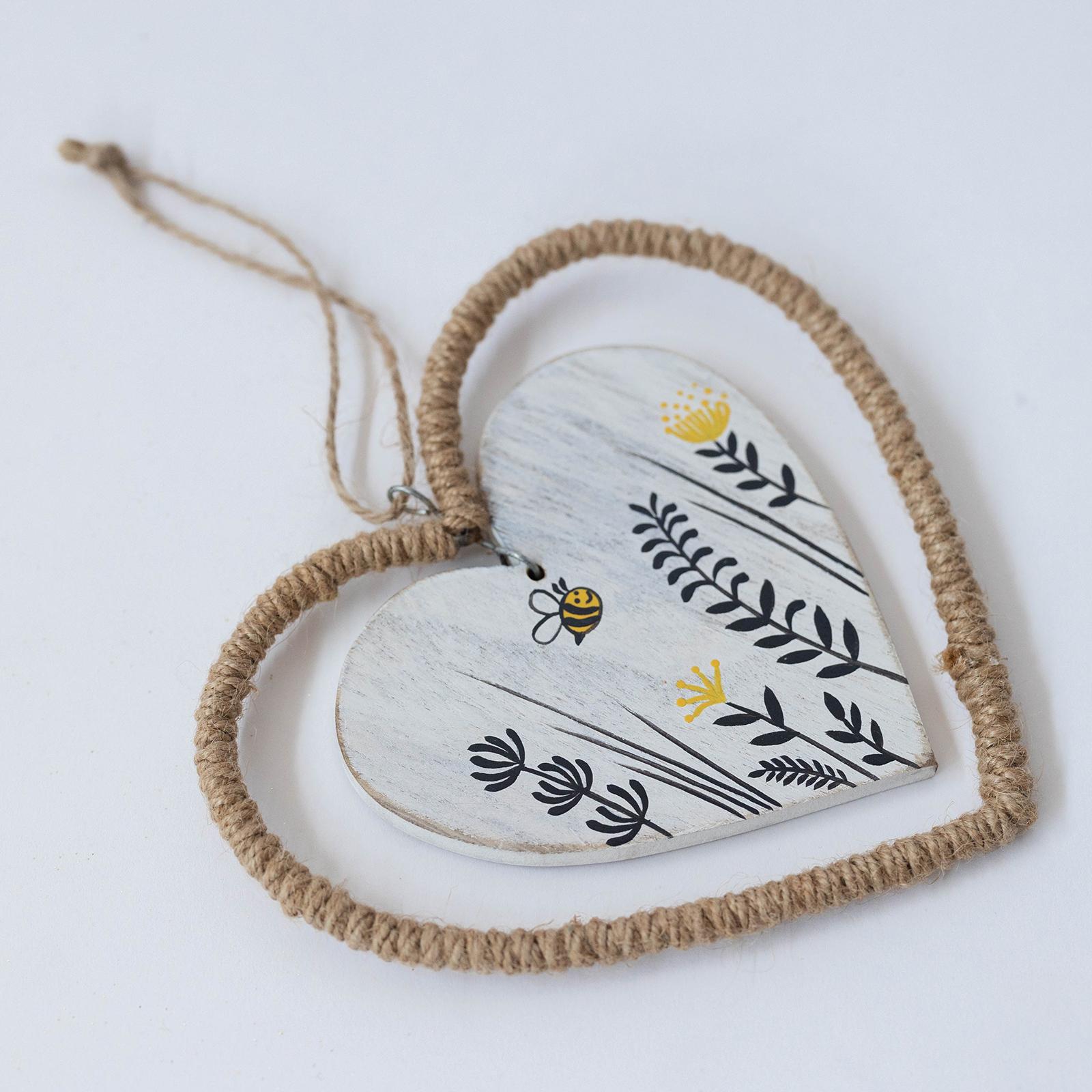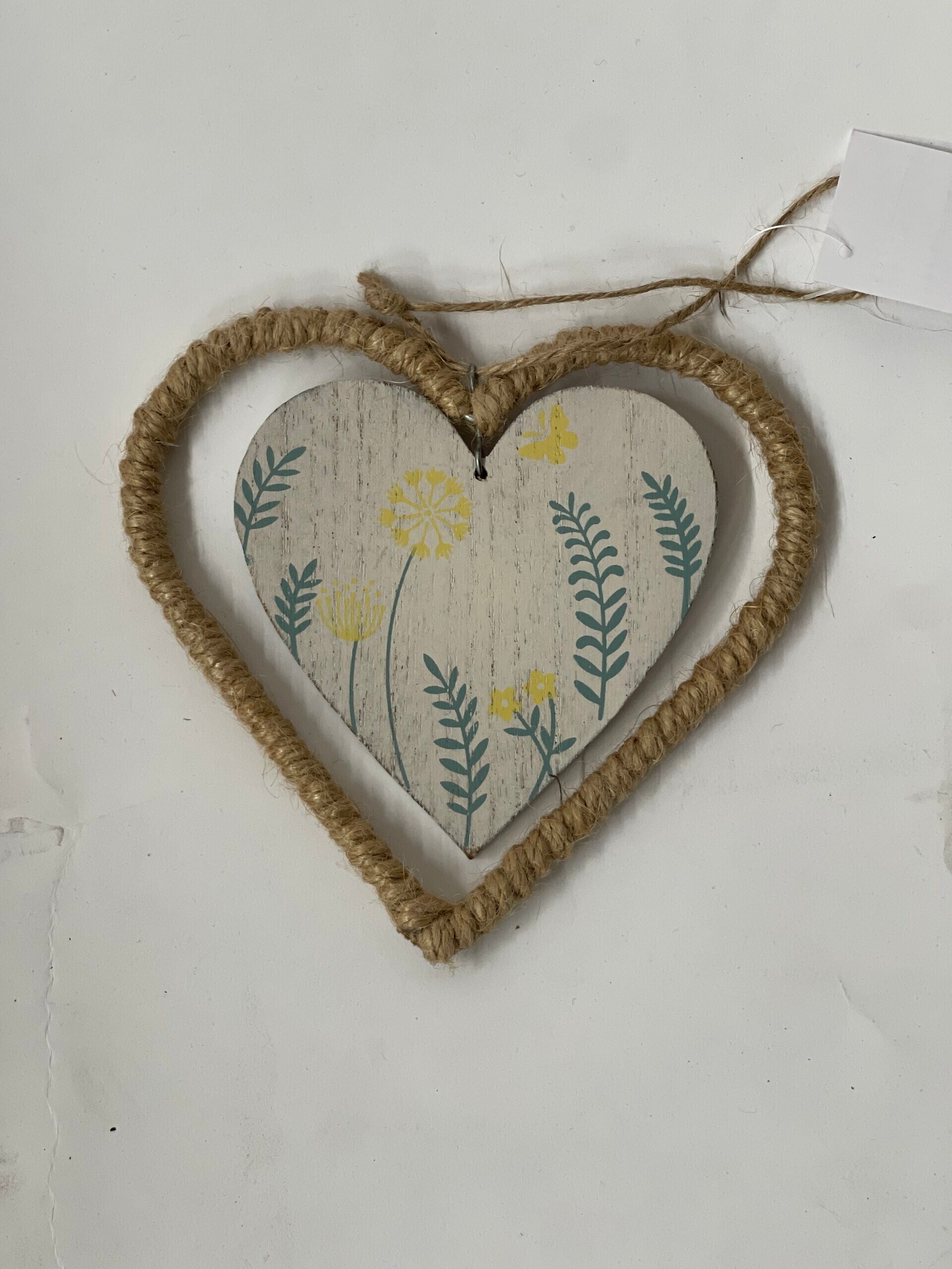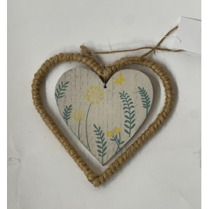 Wooden Heart With Floral Pattern In A Jute Frame Hanging Decoration