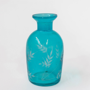Bright Blue With White Leaf Print Square Decorative Bottle