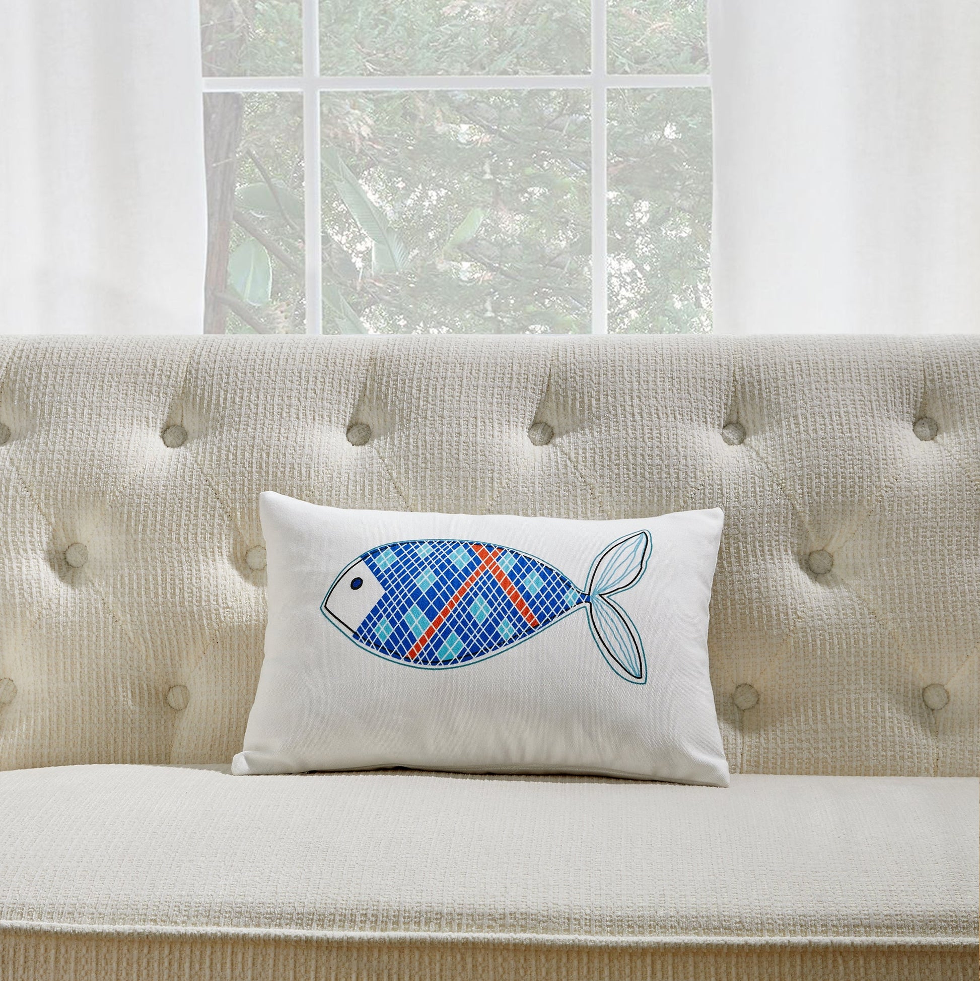 White With Blue And Orange Fish And Feather Down Insert Pillow