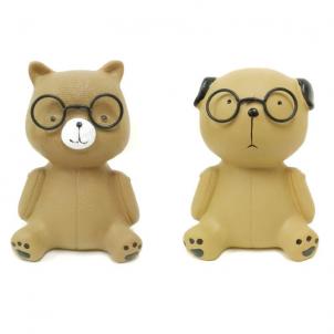 Set Of 2 Assorted Styles Bear With Glasses, Dog With Glasses Piggy Bank
