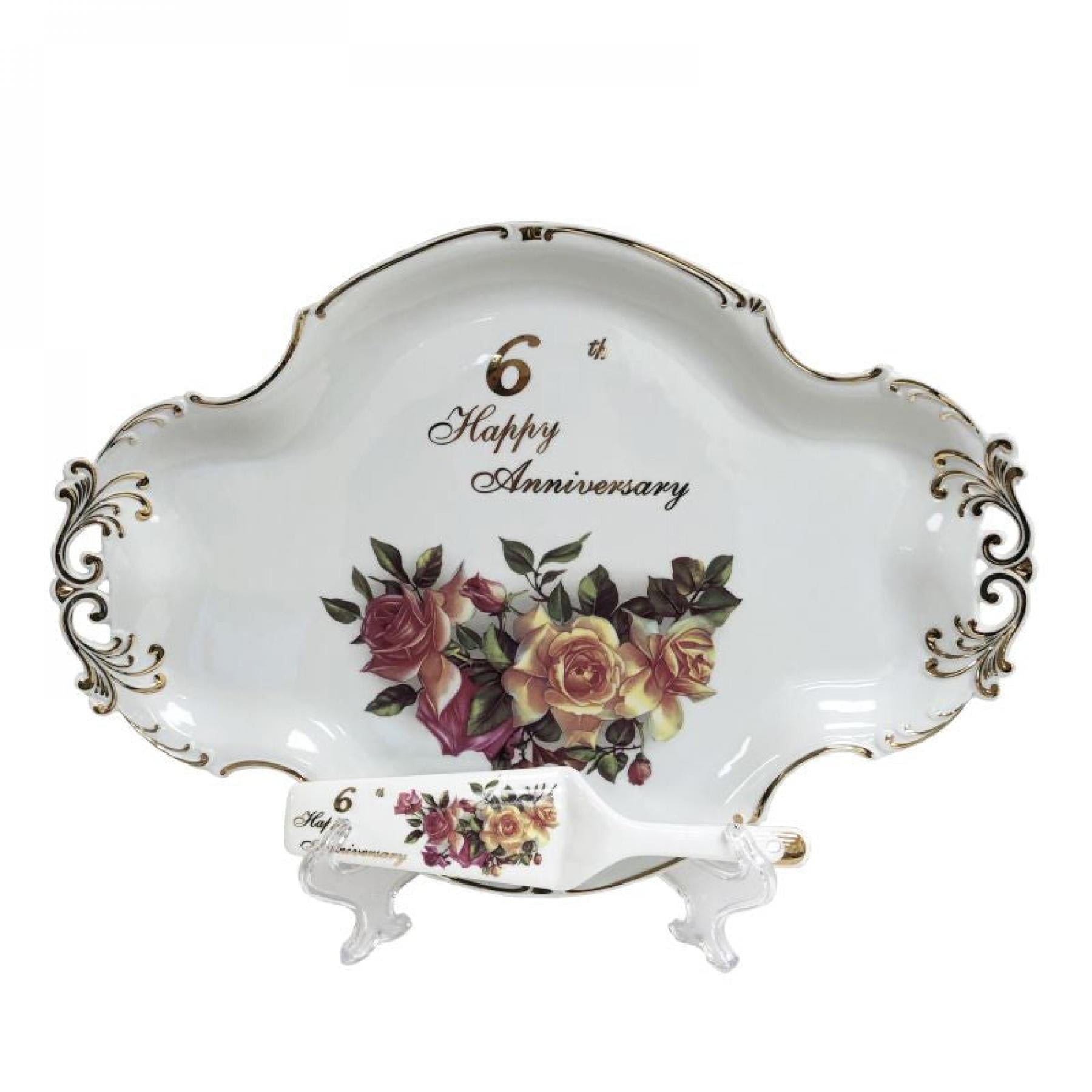 6Th Happy Anniversary With Roses. Server And Cake Tray